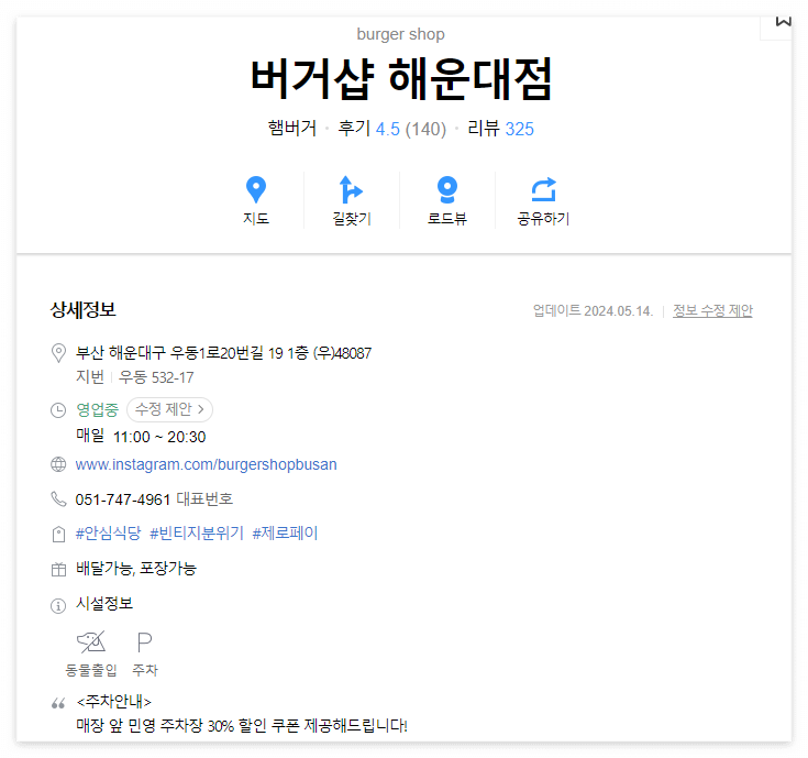 | 메뉴 및 상세정보 | 대표메뉴 및 가격 (*가격 변동이 있을 수 있습니다) |